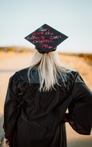 Pictured on the right is Brianna on her graduation day. She wrote on her cap: ‘Risen from the ashes to burn brighter.’